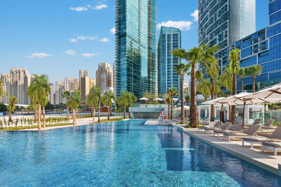 Address Beach Club boasts a sublime waterfront setting, enjoying panoramic Dubai vistas from the Infinity Pool at Level 77 – hailed by Guinness World Records as the highest outdoor infinity pool in the world.