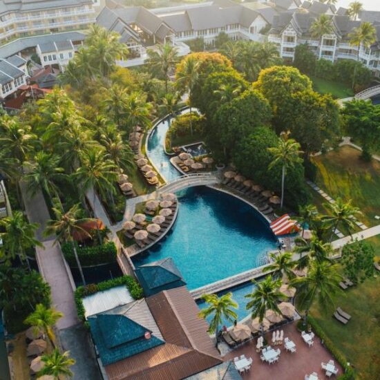 The Angsana Laguna Phuket is only 20 minutes from the centre of Phuket Town. The resort’s design shows aspects of Thai architecture, highlighted by the many canals and waterways meandering through the rooms and suites. It boasts 409 rooms, all of which include air conditioning and Wi-Fi Internet connection. Guests can enjoy the treatments at the award-winning Angsana Spa, which features Asian-inspired massage and therapies, while there is also the opportunity for guests to practice yoga with a personal instructor. There is a gym for guests to use, as well as a golf course in the nearby area, for which a free shuttle is provided. Guests also have the chance to experience scuba diving by the beach, or simply just laze around by the outdoor swimming pool. This luxury hotel is just a 20 minute drive from Phuket’s International Airport, while Ton Sai Waterfall is just 19km away.