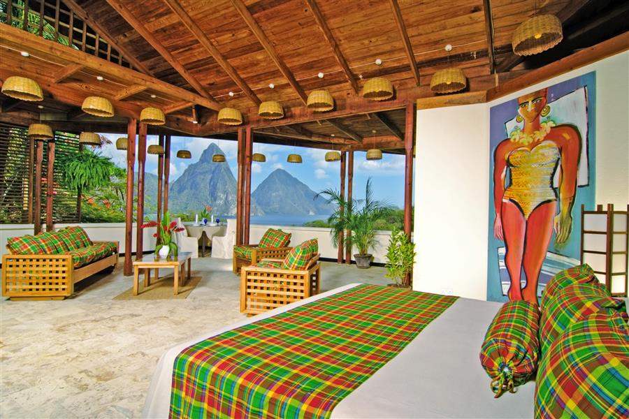 Anse Chastanet enjoys a stunning tropical location and offers amazing views of the inviting crystal clear waters of the Caribbean Sea. It boasts a number of different guest rooms some with views towards the Piton Mountains, as well as a host of facilities including a superb vegetarian restaurant, an excellent scuba diving centre and a wellbeing centre.