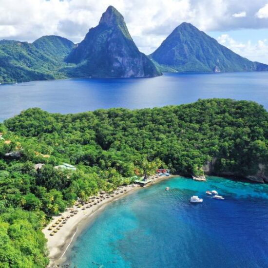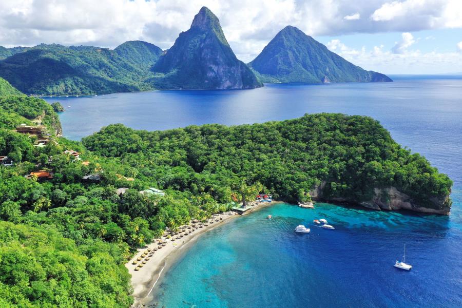 • Views of the Pitons and the Caribbean Sea