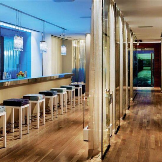 There is a Michelin star restaurant on-site, as well as an outdoor pool, full-service spa, and 24-hour fitness facilities.