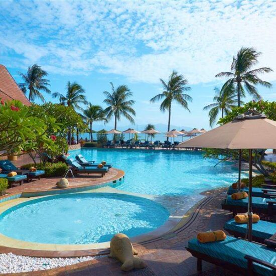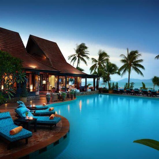 Located on the fabulous Bo Phut Beach and surrounded by seven acres of native plantations, the Bo Phut Resort and Spa offers the most lavish hideaway in Koh Samui. The resort’s two restaurants consist of L’Ocean, the beachfront restaurant that is open all day for breakfast, lunch and dinner, and Sala Thai, which exclusively serves the finest authentic Thai cuisine at dinner. The resort is ideal for couples planning to relax and pamper themselves, and Bo Phut Spa offers a remarkable myriad of treatments, using the highest quality ingredients and experienced professionals to provide services such as massages, facial and body treatments, manicures and pedicures. Types of accommodation at Bo Phut Resort and Spa include: Deluxe Garden, Deluxe Outdoor Jacuzzi, Premier Pool Villa, and Beachfront Villa. The resort is conveniently situated about five km from Koh Samui Airport.