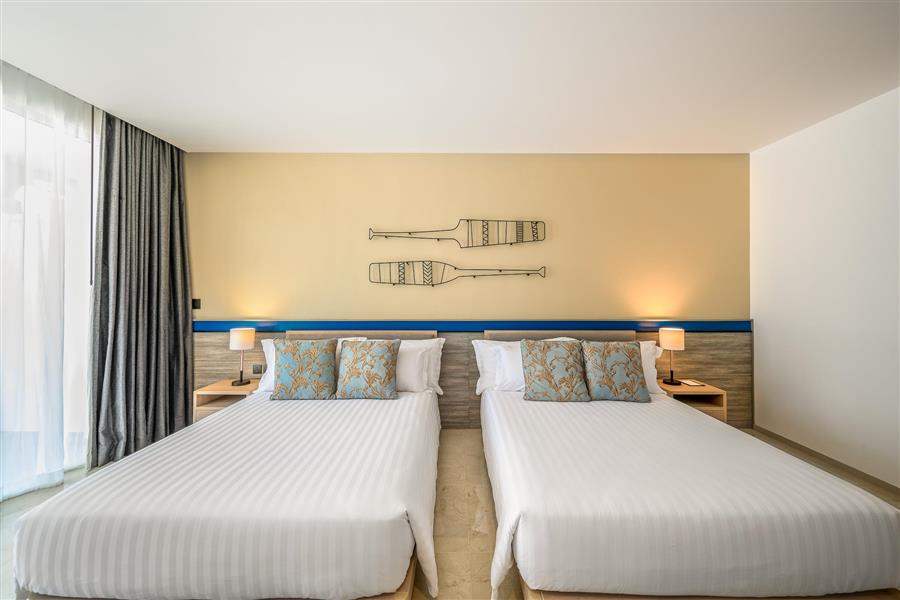 On the quieter end of Ao Nang Beach, the 4* Centara Ao Nang Beach Resort and Spa Krabi is a mix of contemporary tropical resort and fun family atmosphere. A collection of rooms – if you’re travelling with younger guests opt for one of the Family Residences with kitchenette and bunk beds – are set within sleek, low-rise buildings and largely centred around the main swimming pool area. Interiors are minimalist, light and bright with neutral tones and light wooden accents – plus you’ll have complimentary Wi-Fi and a Smart TV. When you pull yourself away from the lagoon-like swimming pool complete with waterslide, you’ll find plenty to do here with Ayurvedic practices and Thai massages at the spa, a children’s club and an all-day dining restaurant – or look out over the Andaman Sea at the Beach Bar.