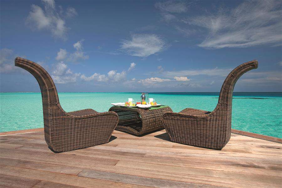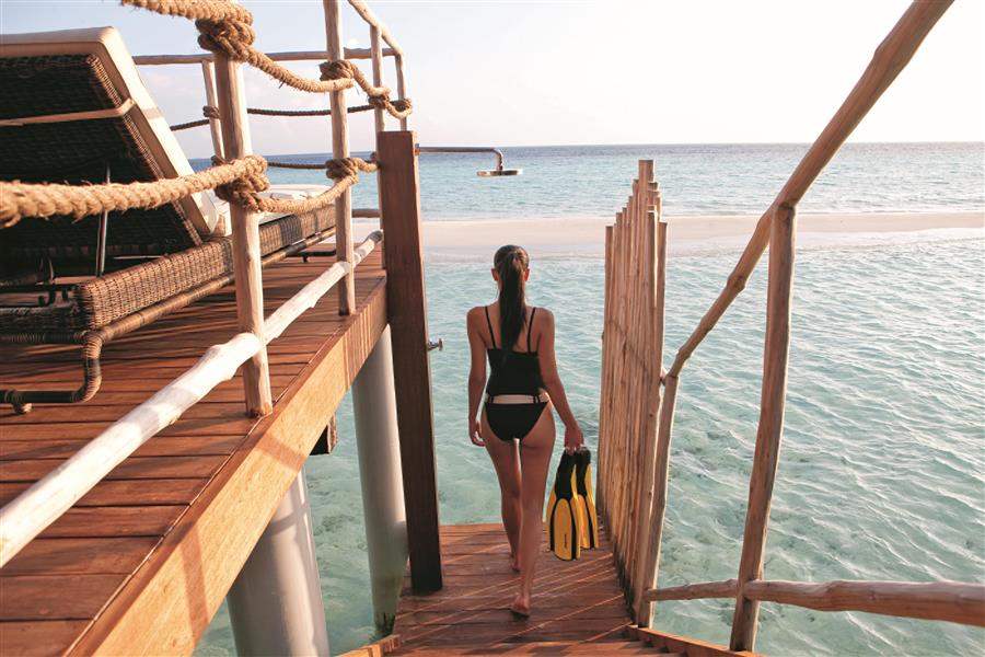 The water villa can accommodate up to 3 people; 2 adults, 2 adults and 1 child or 1 adult with 2 children.