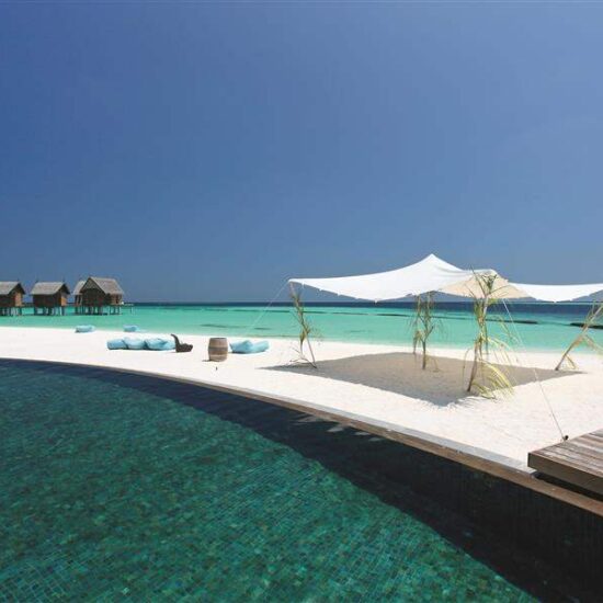 The five star Constance Moofushi on a private island in the Maldives offers a selection of luxury villa accommodation. Guests can choose from three types, all of which boast supremely comfortable furnishings and are well-appointed with contemporary amenities, including a minibar, television and refreshment facilities. A babysitting service is available, allowing parents to slip off for an hour or two into the tropical haven of the sumptuous spa, complete with its wide range of treatments to aid rejuvenation and relaxation. Guests can make use of the windsurfing, kayaking and snorkelling equipment to explore the sun-kissed Indian Ocean. On top of that, guests can charter their own catamaran or pedal boat to conquer the waters. Beneath the surface guests can enjoy unforgettable diving excursions. On land, guests can make use of the gym or simply relax and cool off in the vast refreshing pool before dining in the two on-site restaurants.
