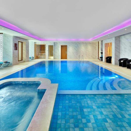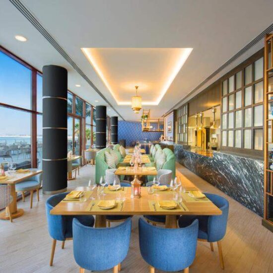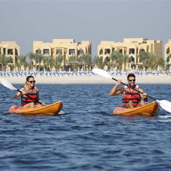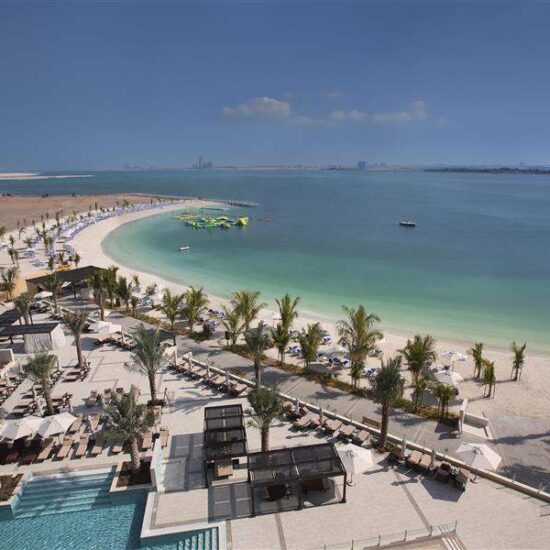 DoubleTree by Hilton Resort and Spa Marjan Island has a stunning beachfront location on Ras Al Khaimah’s Marjan Island, a cluster of four man-made islands in the Arabian Sea. The resort boasts modern facilities, including well-appointed rooms and suites, all with a private balcony or terrace – and most have a sunken bathtub and separate shower. A great option for families, there is a kids’ club and activities, multiple swimming pools including an indoor adults-only pool and floating sea pool connected to the beach by a walkway, as well as an inflatable trampoline and much more! Located near Ras Al Khaimah’s Free Zone and numerous dining and shopping venues, the resort is the ideal base from which to explore the city. DoubleTree by Hilton Resort and Spa Marjan Island is an hour from Dubai International Airport and 20 minutes from Ras Al Khaimah International Airport.