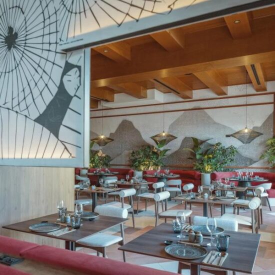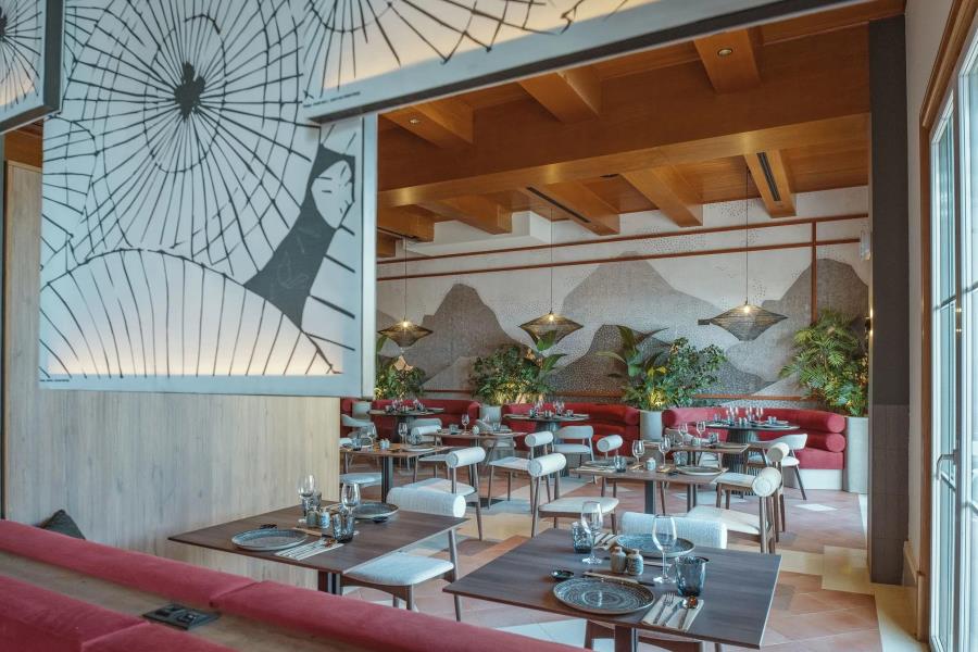 Asian restaurant with Japanese specialties and teppanyaki tables.