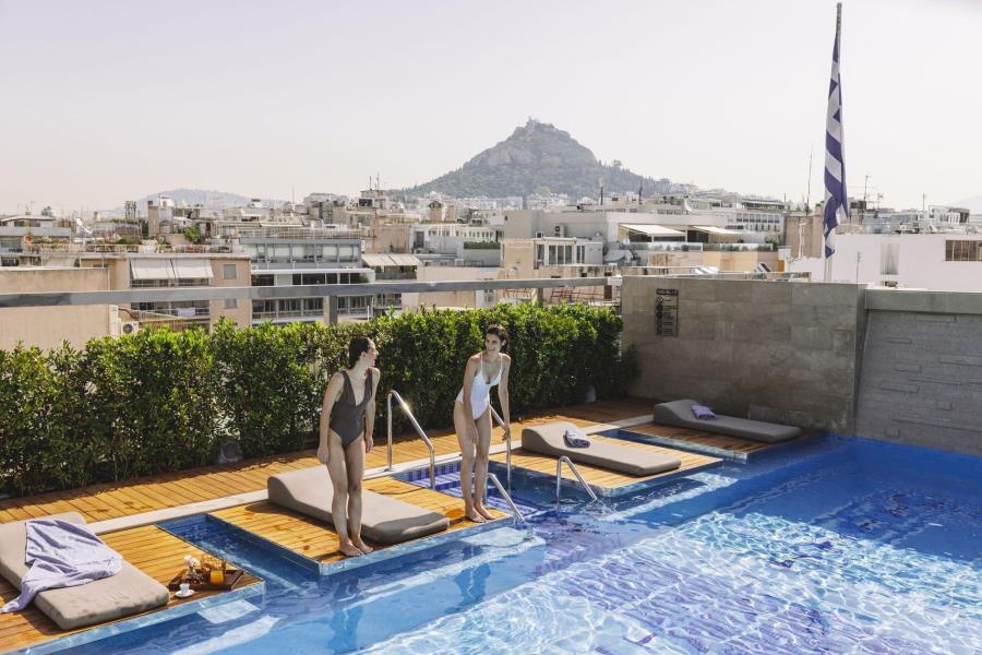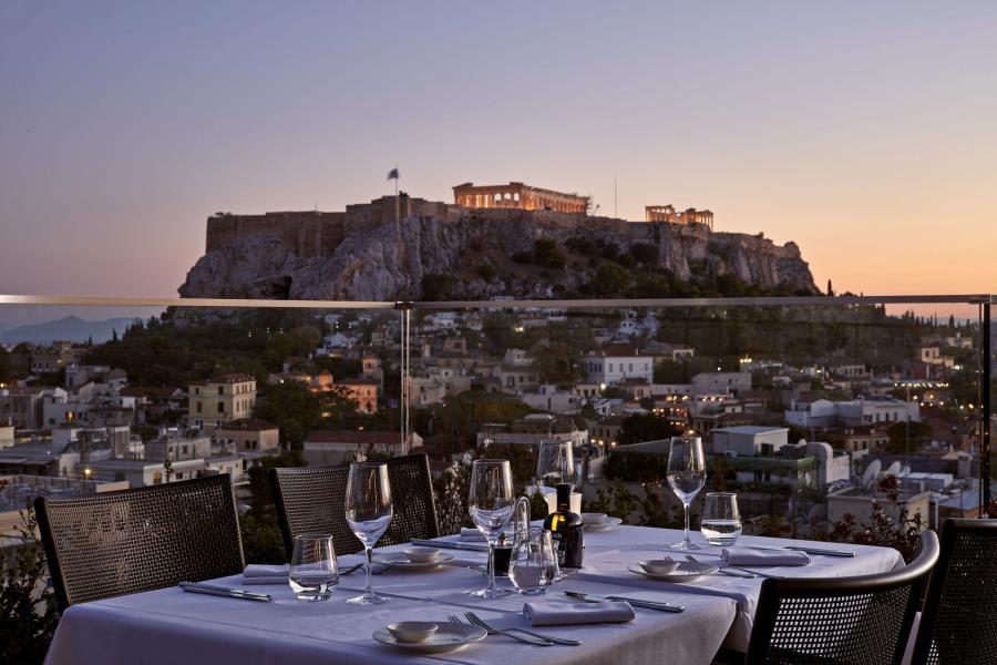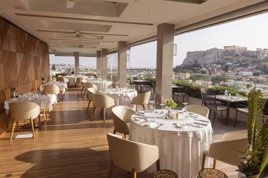 • A 10th-floor cocktail lounge with views of the Acropolis.