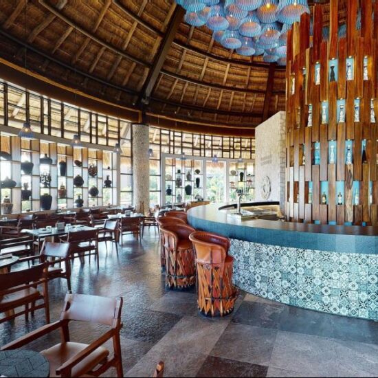 The Hotel Xcaret Arte is a 900-suite, adults-only all-inclusive property along Mexico’s resplendent Riviera Maya coast, showcasing vibrant artworks from local Mexican artisans.