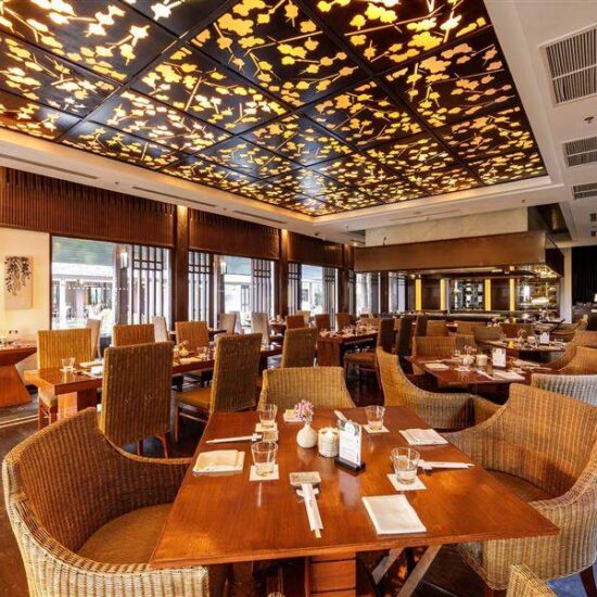• Sakura – contemporary Japanese restaurant with a sushi bar and live teppanyaki station. Open for dinner.