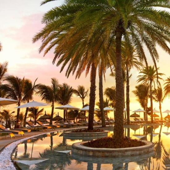 Chic design touches, provided by none other than British icon Kelly Hoppen, are sympathetic to their surroundings, blending traditional Mauritian thatched roofs with contemporary murals, reclaimed materials and beautiful ornaments. But this is not design for its own sake, as shown by the intuitive lighting in the suites and villas, offering a warm evening glow, with everything focused on providing a good night’s sleep.