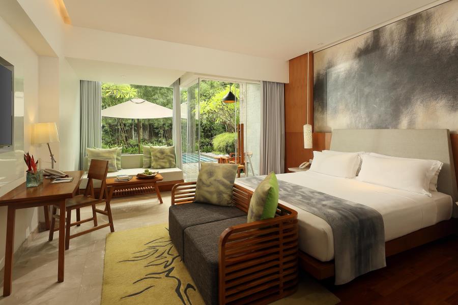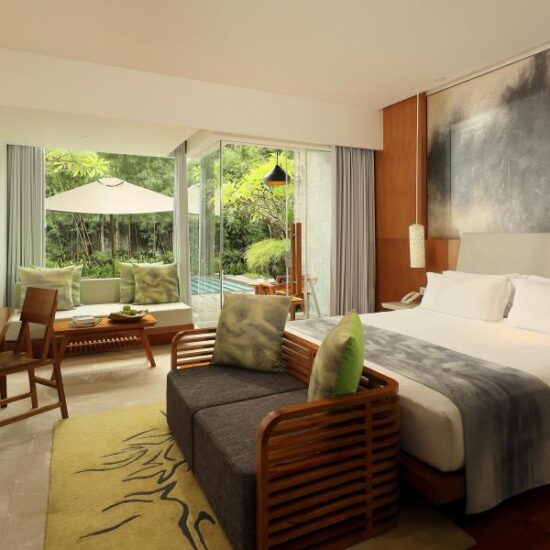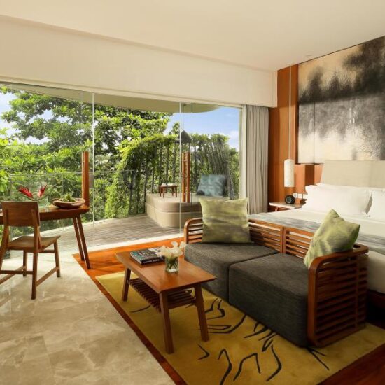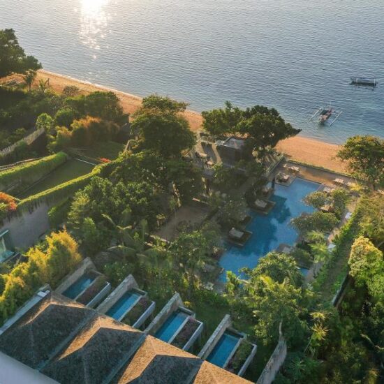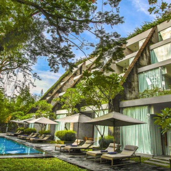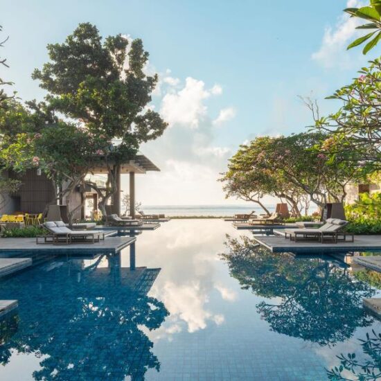 On a thin stretch of beach, surrounded by restaurants, sights and the nearby Sanur Beach, though just 30 minutes from the airport, Maya Sanur Resort and Spa is a conveniently located gem. There is more than enough to keep you happy while inside its oasis-like grounds if you don’t want to venture outside, where stunning water features, tropical trees and an irresistible ocean-facing swimming pool set the scene. The luxurious rooms and suites are extremely well-designed, some with ocean views, others with private pool access, though all feature delicate touches, artworks and classy installations. These, which include standalone deep soak baths, reclaimed wooden ornaments, potted flowers, a beautifully furnished terrace and clever lighting, are intended to create an atmosphere of relaxation, as if you were in your own private spa, and that’s all before visiting the massage and therapy rooms on-site or tucking into the restaurant’s gourmet cuisine.