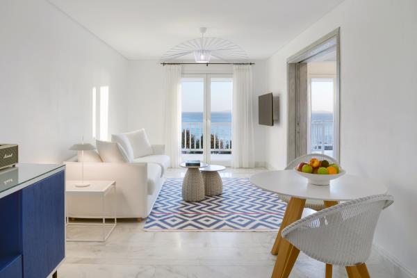 The newest five-star hotel on the island, the ultra chic nautical-themed retreat provides guests with unparalleled levels of services and amenities. Accommodation, comprising 82 generous rooms, maisonettes and suites, plus a truly sumptuous eight bedroom villa, is spacious and equipped to the highest of standards. Many options include private infinity pools, modern gyms, steam cabins and private terraces while common to all are touches such as award-winning handmade beds, designer baths and ambiance-controlled lighting. Step outside your private accommodation and there is a 200 square metre infinity pool to be enjoyed, with views down to the marina and golden sands of the shore, both a leisurely walk away. Alternatively, stay and enjoy the range of spa and Hammam treatments at the 500 square metre spa centre, the fitness centre or perhaps the Thalassotherapy indoor heated pool. Before dinner, available from two restaurants serving Greek & Mediterranean cuisine prepared by highly-skilled chefs, why not take a guided excursion to the sacred island of Delos. Jeep safaris, walking tours and visits to historical sites of interest are also on offer.Services and Facilities