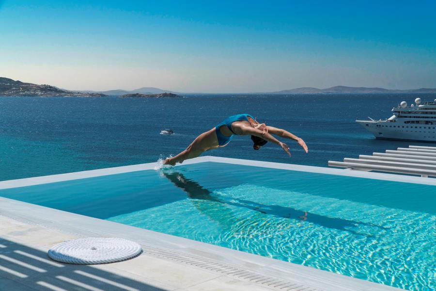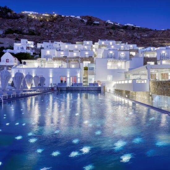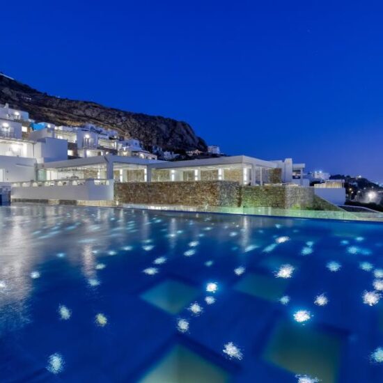 Ideally located within a leisurely stroll of the beautiful sands of Agios Stefanos, Mykonos’ newest five-star hotel is where you can relax and enjoy complete indulgence catered to your desires amidst a backdrop of stunning panoramic views.