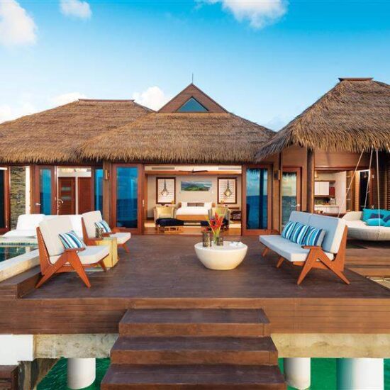 This luxury resort set on a private island in the Caribbean offers a relaxing retreat within tropical surroundings.
