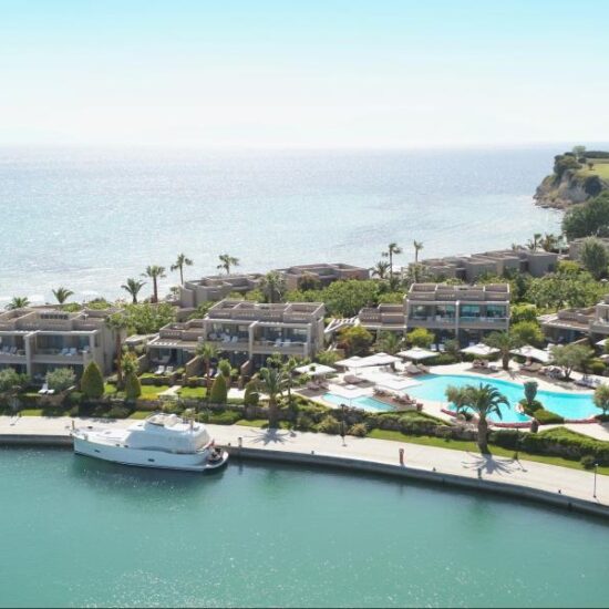 This luxurious, boutique style hotel is located on the Kassandra peninsula of Halkidiki in mainland Greece, in one of the most glorious settings in the country. Views across to the Aegean Sea, shady groves of olive trees, and landscaped gardens and terraces make this resort a truly wonderful place to retreat to. The hotel is made up of suites only, meaning all guests are treated to the ultimate in luxury when staying at the Sani Asterias. It’s the perfect choice for couples or honeymooners of course, but with a kids’ club and childcare services as well as a family suite option it is also a great choice for those travelling with family.
