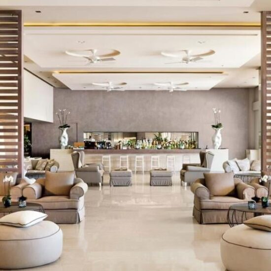 Clients staying at Sani Beach will be booked on a Half Board basis with the option to pay to upgrade to Full Board. Sani Resort offers a ‘Dine Around’ programme where it is possible to dine in up to 22 restaurants. There are options where you can either select one of the several tailored menus – without extra charges – or order a la carte. If you choose to order a la carte, the meal allowance amount of €20 per person (children €10) will be deducted from your total bill (drinks are extra).