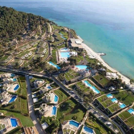 Located on the Kassandra peninsula of Halkidiki, this beachfront hotel is also close to the ancient Byzantine tower.