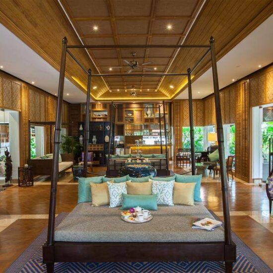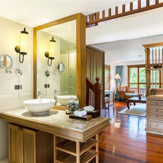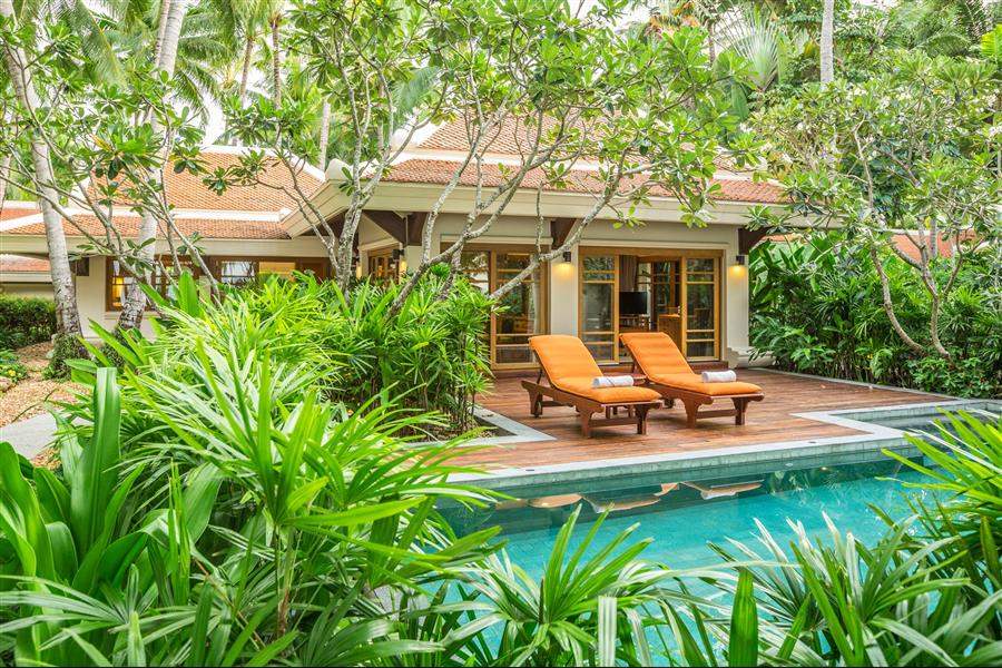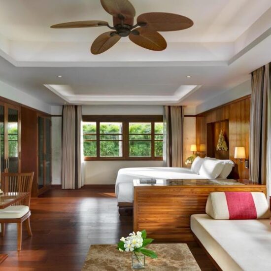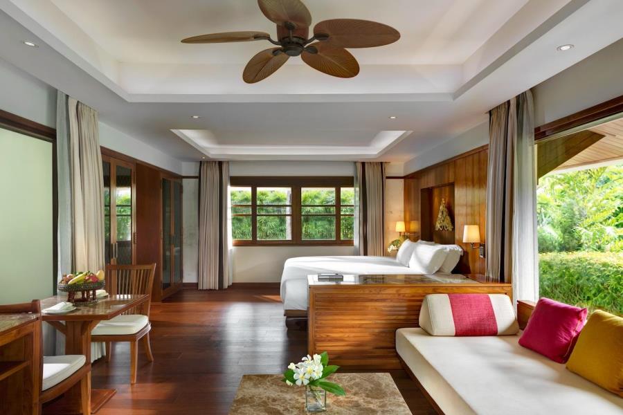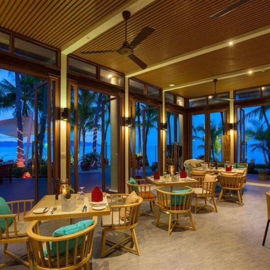 The five star Santiburi is set within 23 acres of palm trees, providing a tranquil sanctuary on the northern coast of Koh Samui. The resort is fronted by a 300 metre crescent of golden sand dotted with private sun loungers and beach butlers providing complimentary towels, mineral water and fruit and ice cream. Complimentary non-motorised watersports, including surfing and kayaking are available, with free professional coaching on hand for hobie cat, hobie wave and laser sailing. The resort boasts an 18-hole championship golf course, the Santiburi Spa and Thai boxing and cooking classes. Dining options include Sala Thai offering set sharing menus, the beachfront Rim Talay and themed food events from beach BBQs to Thai buffets with traditional dancing.