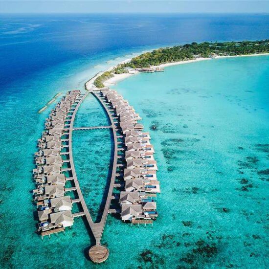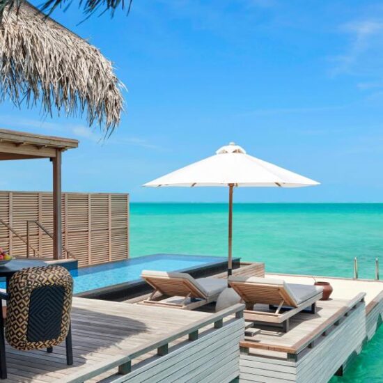 Sirru Fen Fushi – Private Lagoon Resort is truly one-of-a-kind. At this resort in the Maldives, you can choose from beach, water or tented jungle villas for the ultimate glamping experience in the Indian Ocean. There’s an understated style here at Sirru Fen Fushi – Private Lagoon Resort with a mix of homemade – think minimalist with champagne wood, rope and glass chandeliers, crochet rugs and macramé cushions. And it doesn’t hurt that each and every villa comes with the added luxury of 24-hour personal villa host service and private pools! Explore the kilometre-long island from beaches to jungle and back again by foot, bicycle or buggy and encounter the underwater art gallery – a first for the Maldives – which acts as a man-made reef by British artist, Jason Declaires Taylor. There are excellent dining options, with both half board and full board to choose from, complemented with an all inclusive package that includes a variety of food and drinks in the Maldives to complement your stay. As for families, there’s a play garden and shallow pools while kids from four to twelve will enjoy the kids’ club while the teen hub is great for the older kids to hang out, with pool tables and video games.