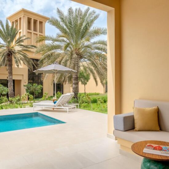With 292 stylish rooms decorated by award-winning designers from Kristina Zanic, this 5-star beach resort in Ras Al Khaimah blends Sofitel’s French joie de vivre with the UAE’s warm Arabian hospitality. Just a one-hour drive from Dubai’s international airport, this contemporary resort is a wonderland for families, boasting four pristine pools that include a lagoon-style pool and a kids’ pool with waterslides along with dedicated kids’ and teens’ clubs. Adult guests can enjoy the adjacent par-72 championship golf course as well as the resort’s tranquil Sofitel Spa with Clarins, where a range of rejuvenating treatments await. The golden sands of Al Hamra Beach, meanwhile, are within easy reach, while a scenic boardwalk connects the resort with neighbouring Ritz-Carlton and Waldorf Astoria properties. Seven superb restaurants and bars at the property offer diverse culinary experiences, with cuisines including refined French flavours, authentic Middle Eastern dishes and Polynesian dining.