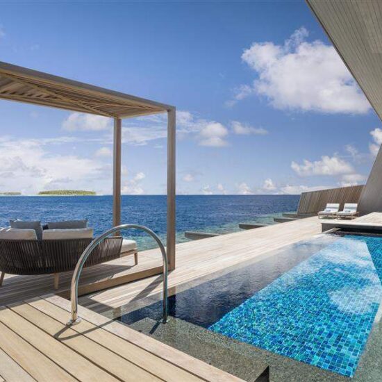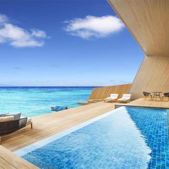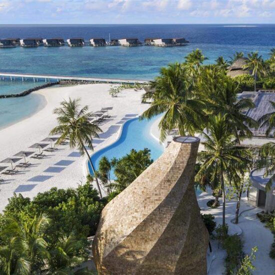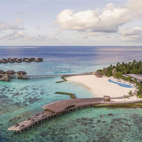 Experience redefined barefoot luxury at the St. Regis Maldives Vommuli Resort. Your unforgettable stay starts with a scenic seaplane journey from Malé flying over azure waters before touching down to the private island resort surrounded by pristine sands and verdant tropical jungle. Cutting-edge design combines island-inspired elements with contemporary style to create a library sculpted in the shape of seashell and bar resembling a whale shark. Elegant overwater and beach villas promise stunning views from private plunge pools and wooden terraces and attentive personal St. Regis Butler Service ensures the little details are taken care of throughout your stay. Dine on exquisite cuisine at five on site restaurants and bars, select your own tailored treatment at the Iridium Spa and snorkel or dive the private coral reef amongst colourful fish and – if you’re lucky – green turtles.