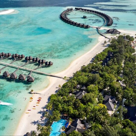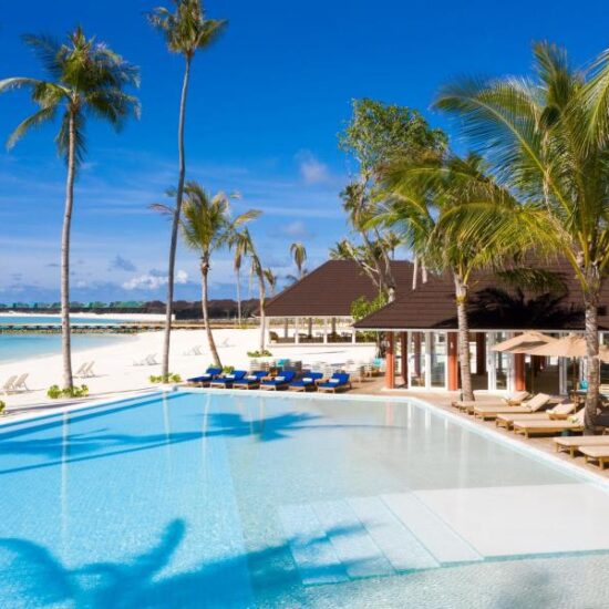Sitting within The House of Siyam’s vibrant Lifestyle Collection of resorts, where abundant experiences and family-friendly entertainment take centre stage, Sun Siyam Olhuveli is a multi-island resort set on a beautiful lagoon at the tip of the South Malé Atoll with clear blue waters, white sandy beaches and dreamy sandbanks. Aside from a wide selection of accommodations – we love both the overwater villas with direct sea access and the beach suites with your very own private pool – this resort has a multitude of fabulous drinking and dining choices, with buffet and a la carte options serving everything from upscale Maldivian dishes to casual Mediterranean plates. Holidaying here is as active or as relaxing as you want: chill out beside one of six swimming pools, go diving in hidden caves and sunken shipwrecks or escape to one of two spas – one is set over the water on Dream Island, connected to the main island by a walkway. When evening falls, there’s traditional Maldivian entertainment, discos and live bands to set a vibrant atmosphere.