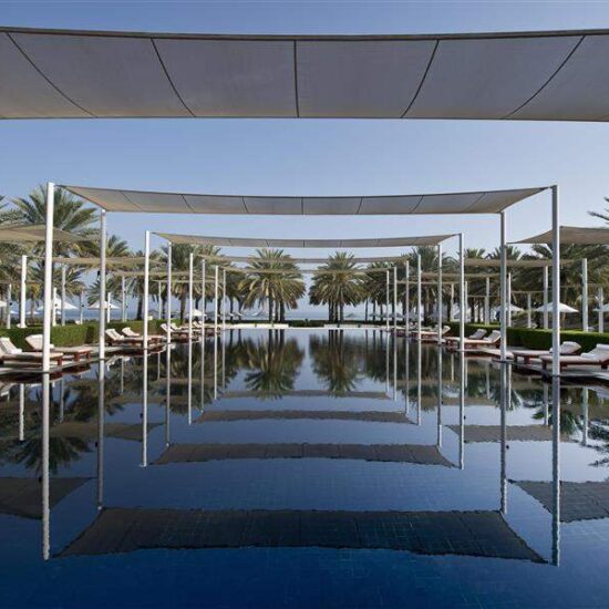 Set between the Al Hajar Mountains and a private white sand beach along the Gulf of Oman, the Omani-style Chedi Muscat boasts 21 beautiful acres of manicured hedges and tranquil water features, ponds and pools. Centrally located in Muscat, this is an excellent hotel for both a relaxing retreat and exploration of the city’s cultural attractions. A choice of three swimming pools, including the longest in the region, cater for both families and adults only. The Serai Pool is particularly memorable with its dark glittering mosaics and elegant canopy. A selection of rooms and suites offer panoramic views of the gardens, ocean and mountains; upgrade to a Club Room or Suite for access to the Club Lounge including complimentary breakfast, cocktails and canapés. Guests can relax with Balinese therapies and Ayurveda treatments at the spa, play a game of tennis at Euroclay tennis courts or head out on dolphin watching, snorkelling and diving excursions.Services and Facilities