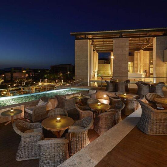 The Romanos, a Luxury Collection Resort possesses a huge range of wining and dining haunts – 21 to be exact – offering everything from lip-smacking seafood to succulent steaks to ice cream rolls. There really is everything going here, including Japanese cuisine, traditional and modern Greek fare, Lebanese delights and American classics, served in a typical diner. If it’s a snack you’re after, the pool bars and souvlakerie will do the trick, while fine dining with Michelin starred and renowned chefs won’t be a problem – particularly at the elegant Da Luigi Italian restaurant. As for watering holes, the Kafenio is a Greek-style café providing all manner of coffees – as well as more potent poisons, like ouzo and tsipouro – while Anax Lounge enjoys sea views from its sophisticated perch.
