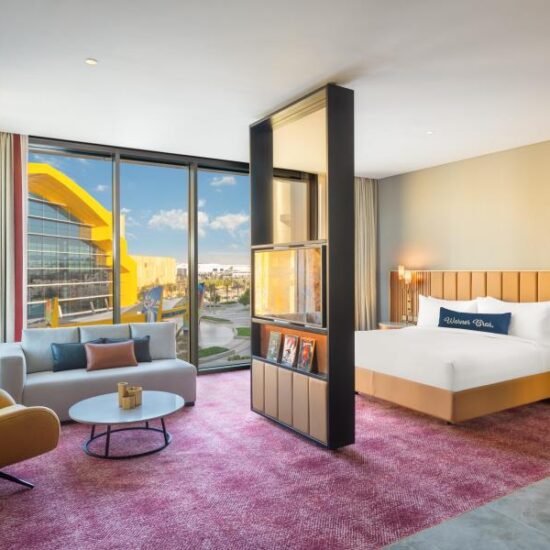 Located directly across from Warner Bros. World™ Abu Dhabi in the UAE capital’s entertainment district, The WB Abu Dhabi, Curio Collection By Hilton has one of the best locations to access the thrills and excitement of Yas Island’s theme parks. Along with stylishly deluxe accommodations and five separate on-site restaurants and bars, this fan-focused five star luxury hotel delivers plenty of cinematic features from the Warner Bros. universe – we’re talking room service delivered by Bugs Bunny, Batman’s Batmobile in the lobby and a replica of the iconic sofa and fountain from the opening credits of 90s sitcom F.R.I.E.N.D.S. Plus, every single guest benefits from complimentary access to one of three Yas Island theme parks every day of their stay, with tickets available for Warner Bros. World™ Abu Dhabi, Ferrari World Abu Dhabi and Yas Waterworld.