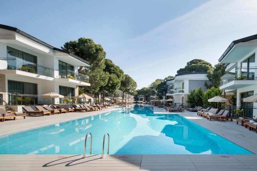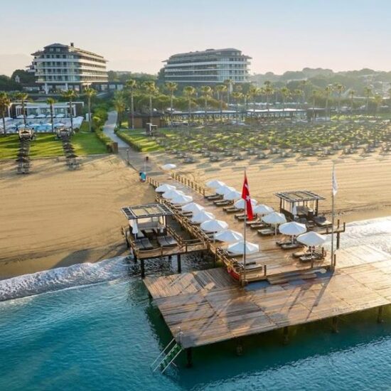 The hotel is positioned on Belek beach, to the east of Antalya, overlooking the Aegean and Mediterranean seas. Antalya, with its pleasant, green hinterland and easy-going ambience, is a popular destination for golfers, with a number of excellent courses located nearby, the nearest just a couple of miles away. Belek township is also close by, with local cafés, shops and restaurants, and a bazaar every Sunday. Lively Antalya city lies 45 minutes along the coast to the west.