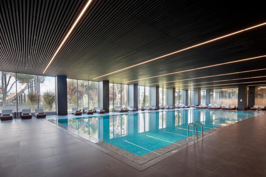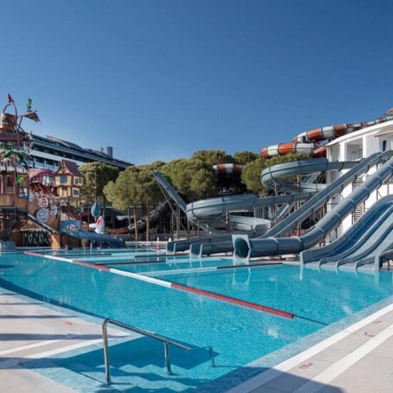 Voyage Belek Golf & Spa is a striking resort hotel occupying a huge swathe of pine-forest-fringed land, fronting an impeccably maintained beach on the Aegean coastline. With its wide range of facilities and accommodations, the hotel attracts a broad client appeal. Accommodation choices include bungalows, set amongst the cool pines, elegant standard rooms and Lagoons Duplex with swim-up pool access. In-room amenities include Wi-Fi, a private bathroom and a furnished balcony or terrace. All rooms are able to comfortably accommodate couples, individuals or families. The hotel features a choice of outdoor swimming pools with sun terrace, loungers and parasols, and poolside bar service. Children are able to enjoy their own pool, complete with waterpark. Indoor recreational facilities include a swimming pool, gymnasium and spa centre with hammam, sauna, massages, beauty treatments and hairdressing services. Food and beverage options abound, starting with the hotel’s all-day buffet-style restaurant, featuring international and local cuisine, and serving breakfast, lunch and dinner. International, a la carte gourmet cuisine is featured at the resort’s alternative restaurant outlets, with Italian, Japanese, seafood and grills amongst the choices available. For drinks, the pool bar, along with a beach bar and a disco bar, are all on hand to provide guests with a full range of drinks and light refreshments throughout the day, and late into the evening. Voyage Belek certainly looks out for children’s needs, from the dedicated children’s pool to kid’s and teen’s clubs, playground, bowling and mini-disco. The hotel provides guests with a comprehensive entertainment programme, operational during the day and evenings. Aerobics, tennis and yoga are amongst the other activities available here. This is a resort that truly has something for everybody.