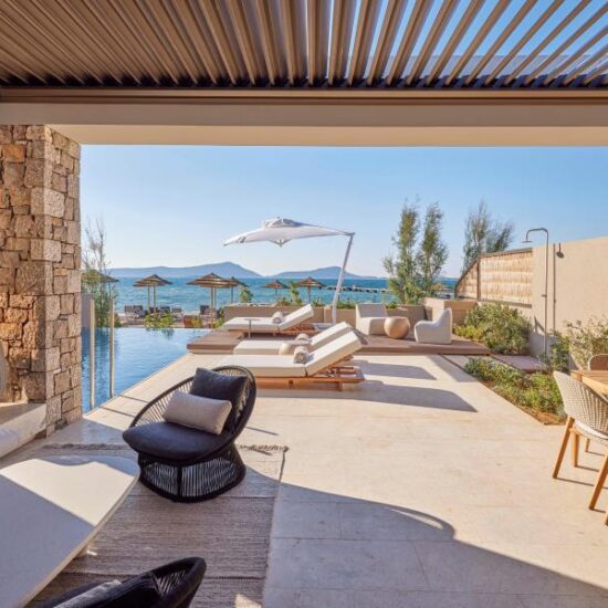 W Costa Navarino brings a lively atmosphere, chic accommodations and invenetine, authentic cuisine across five dining venues to this Mediterranean seaside landscape. Overlooking the Ionian Sea, a stylish collection of rooms, suites and villas – whether beachfront, rooftop or with direct access to an infinity pool – make use of natural materials including stone, wood and reed and benefit from the W brand’s unique Whatever/WheneverⓇ service. And while not strictly adults-only, there’s undoubtedly a grown-up vibe throughout this fun-loving resort, from the guest DJ sets and theme shows at the vibrant beach club to cooling dips in the expansive infinity pool with views of Navarino Bay.